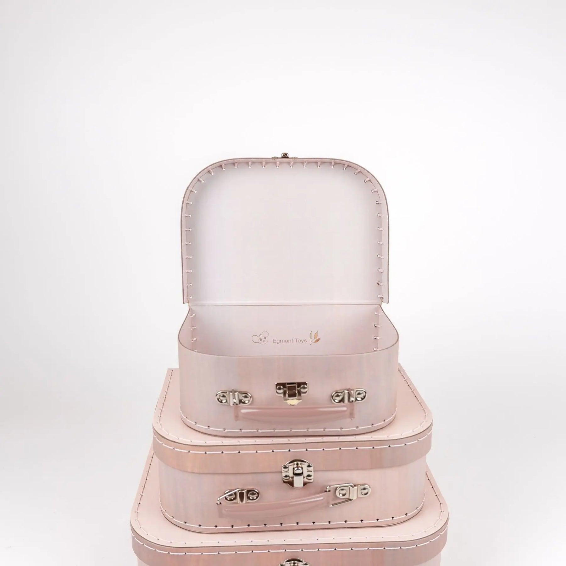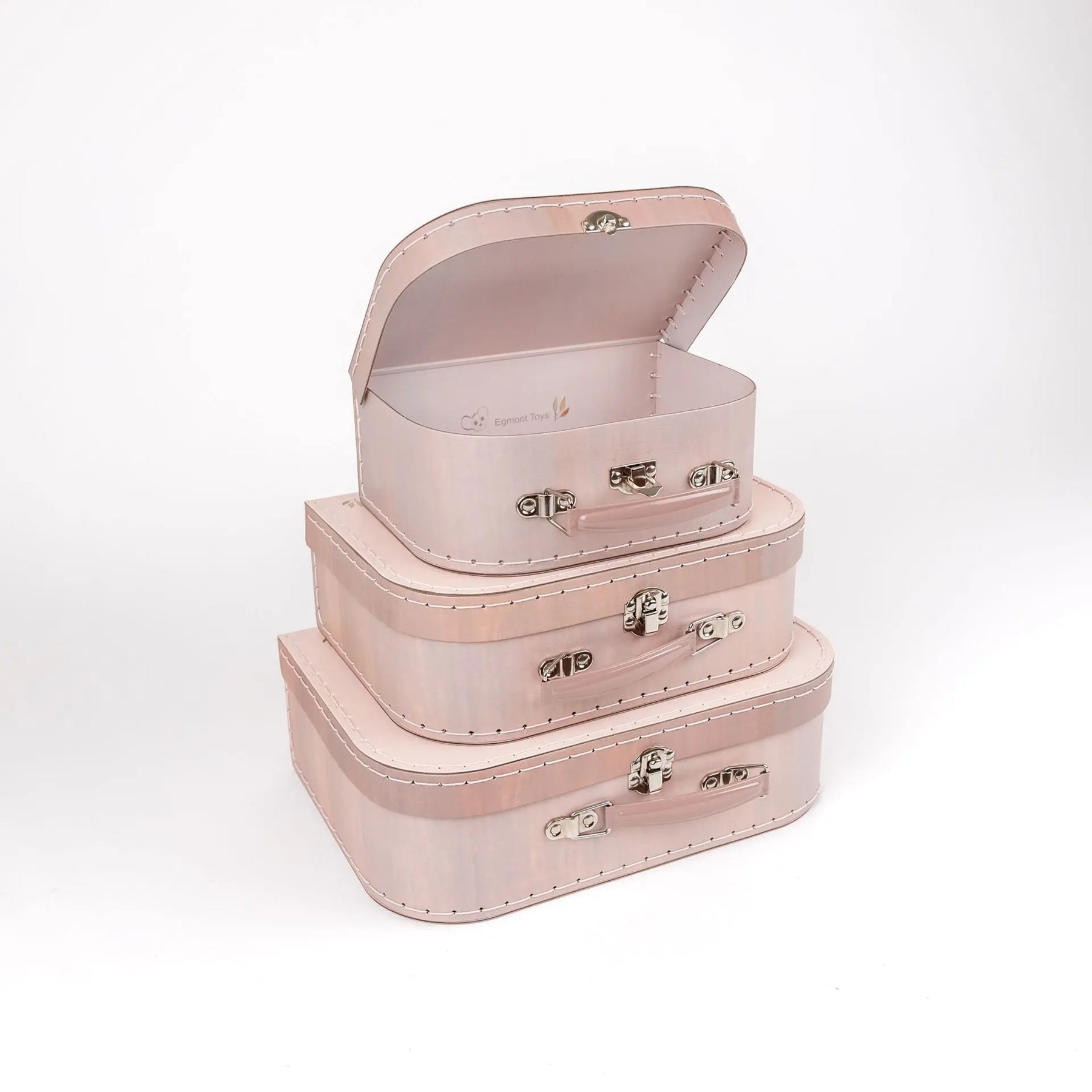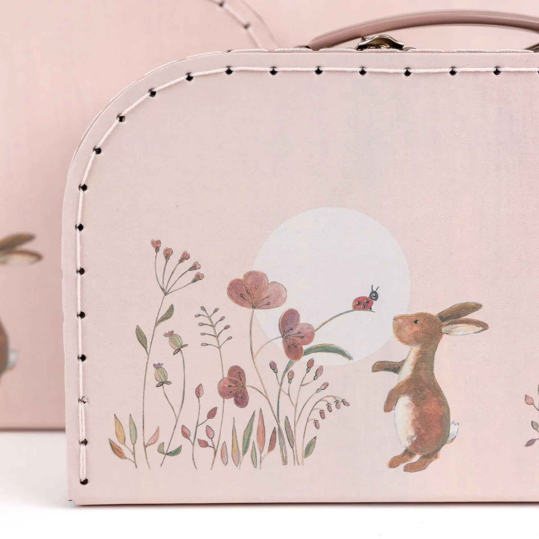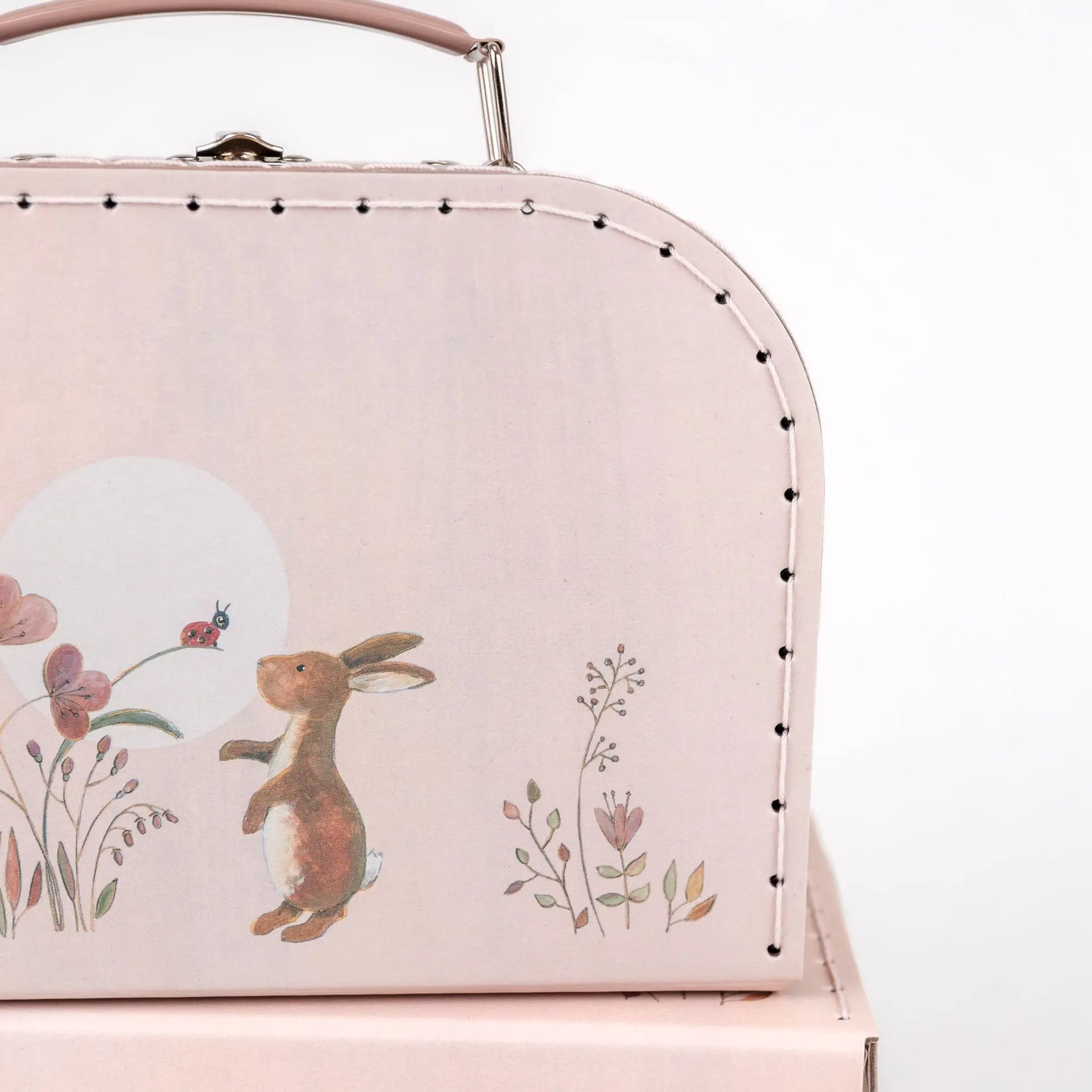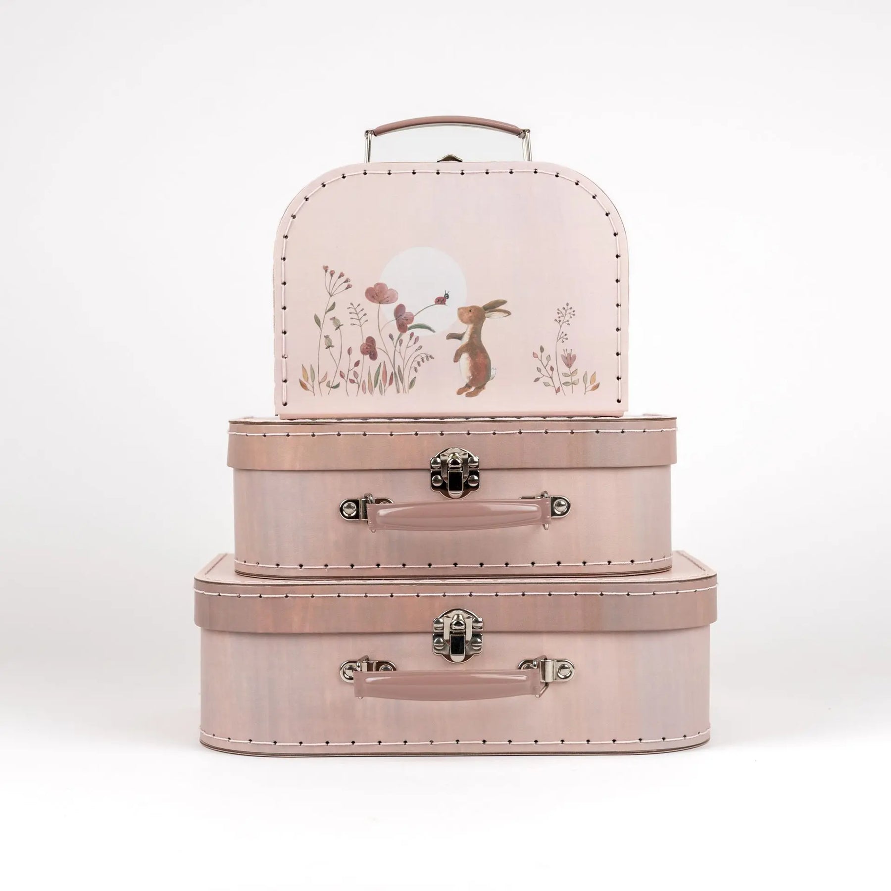 Three soft pink suitcases transform any corner into a magical adventure. Little hands pack treasures whilst the gentle rabbit and ladybug watch over secret collections.
