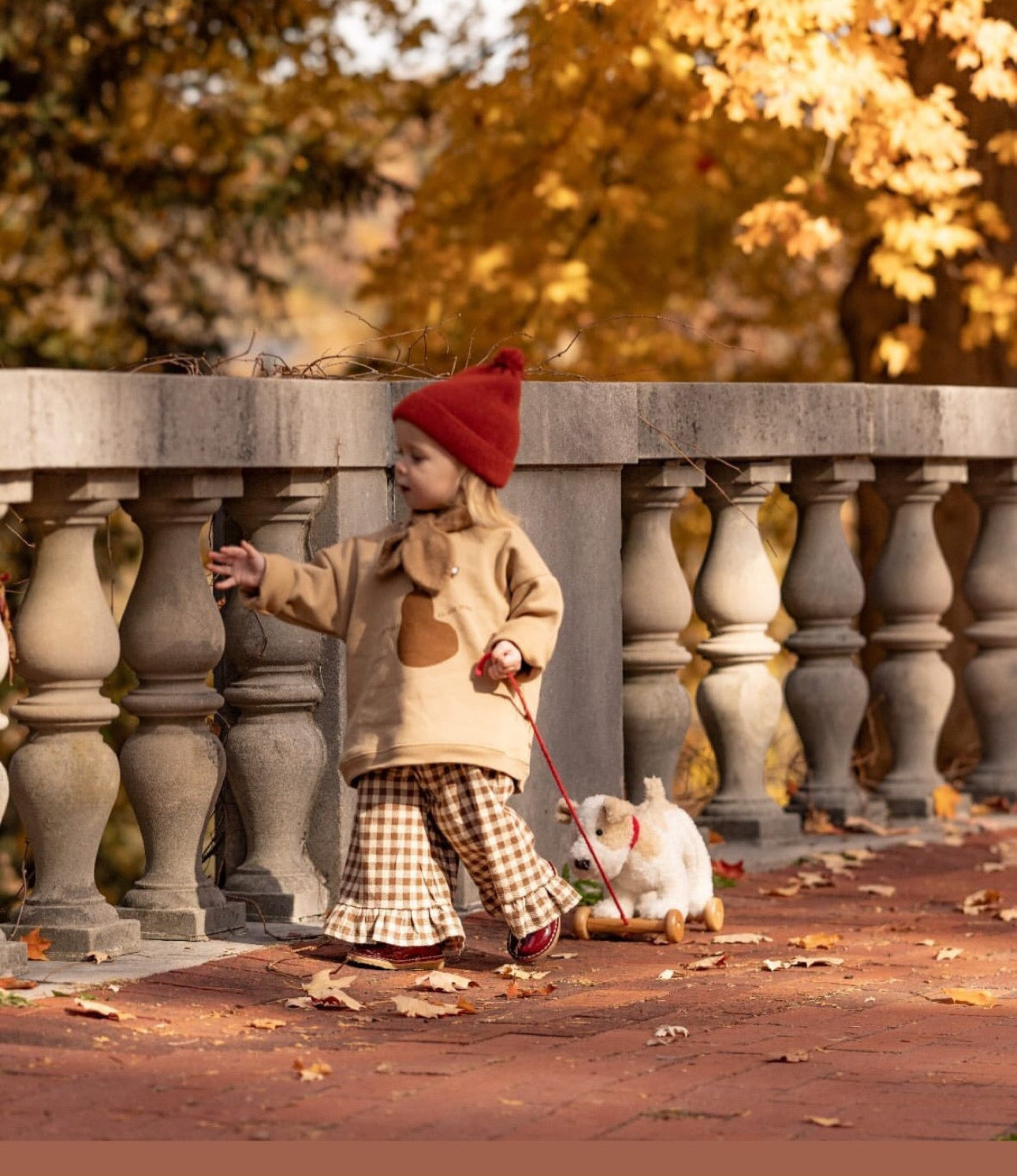 Watch little feet patter across the room as this soft, cuddly companion rolls along behind. The gentle click of wooden wheels turns any hallway into an adventure trail.