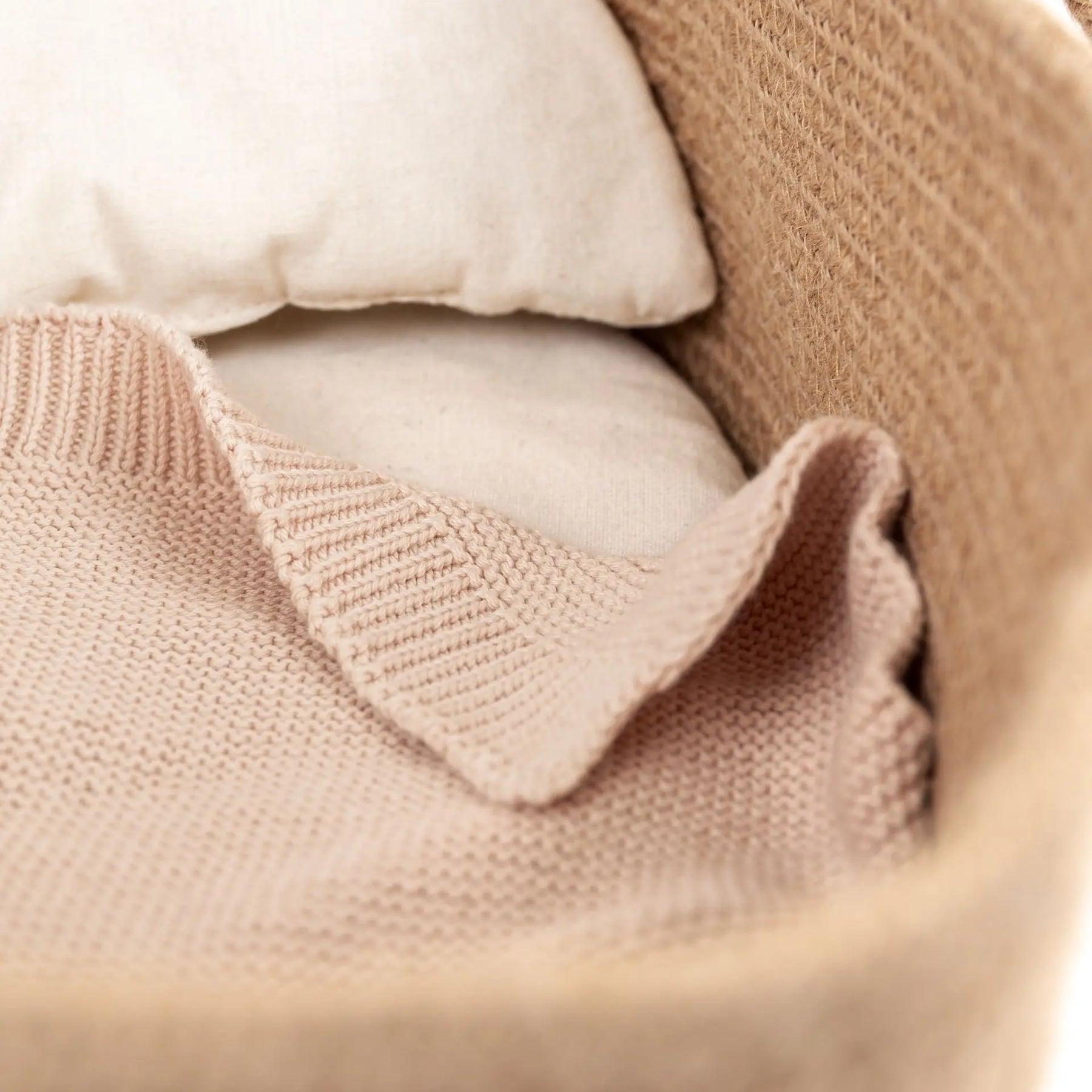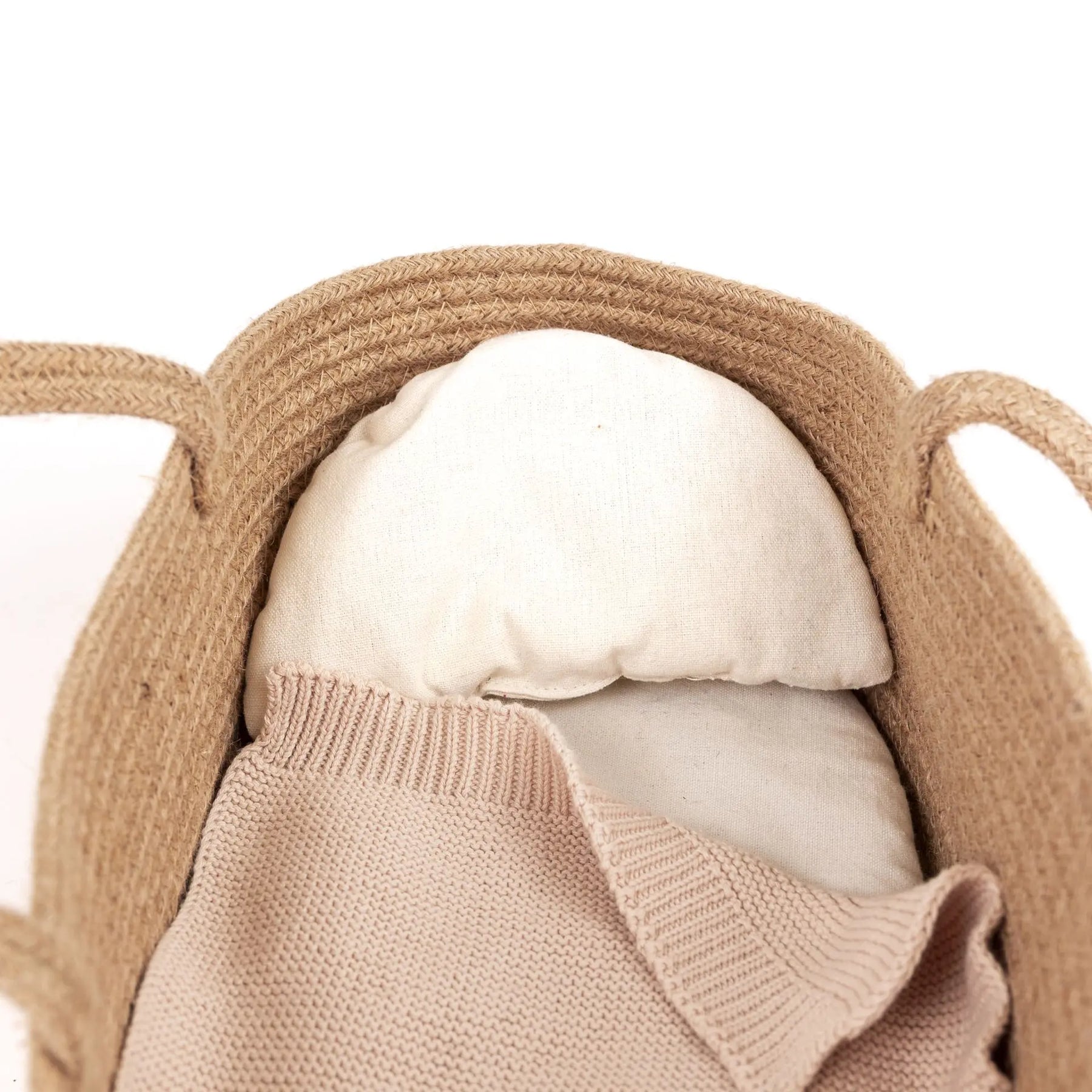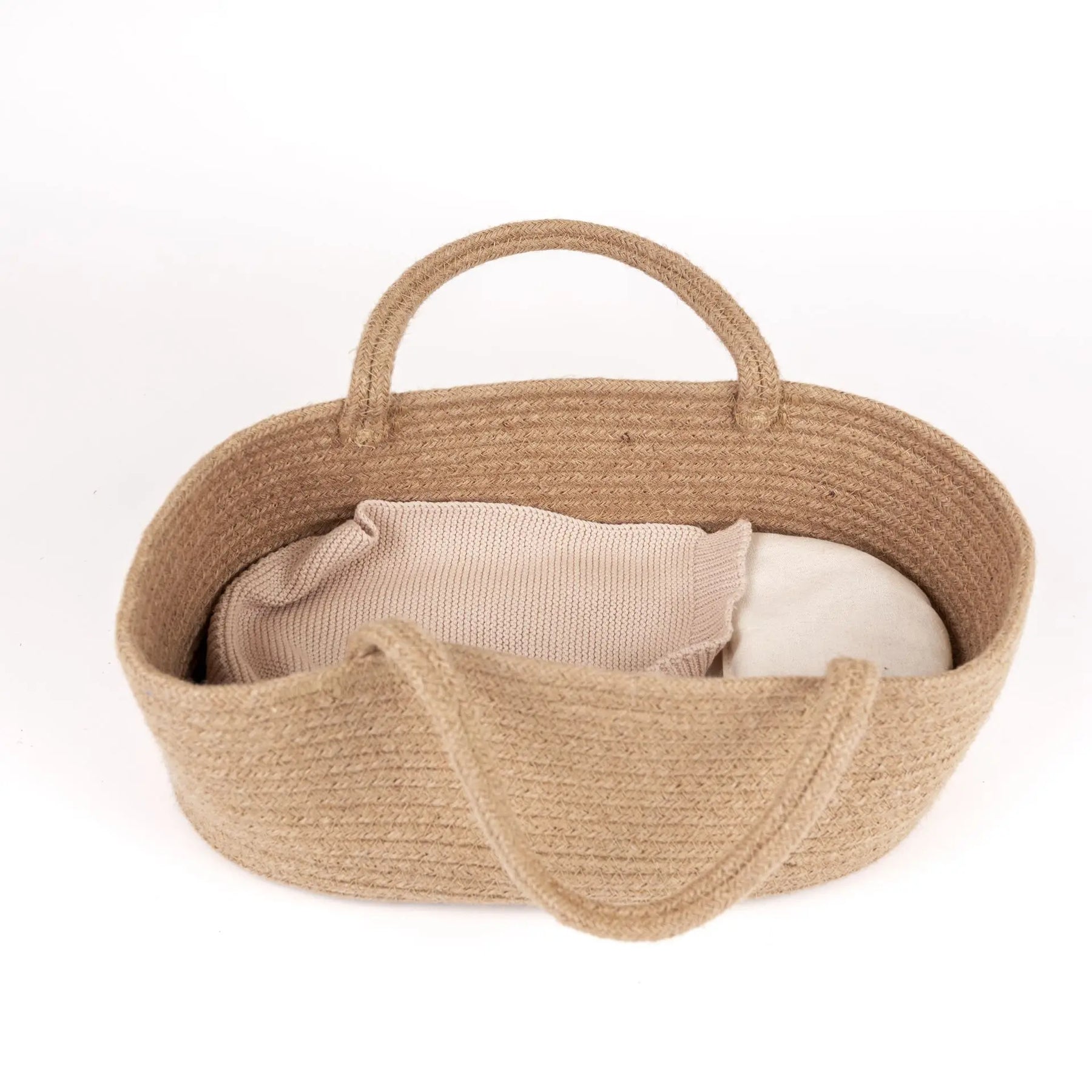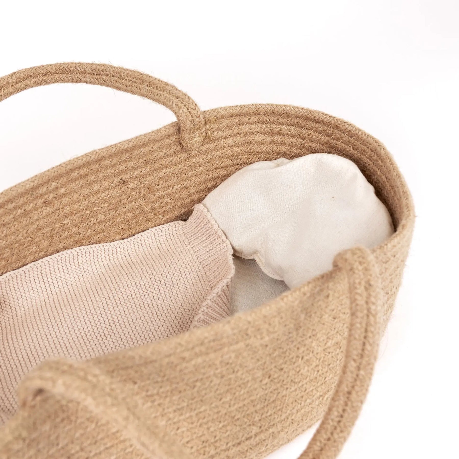Made from natural rope fibres, this sturdy carry cot teaches caring through pretend play. The cotton bedding feels wonderfully soft, whilst the hand-woven basket holds its shape beautifully for dolls up to 38cm.