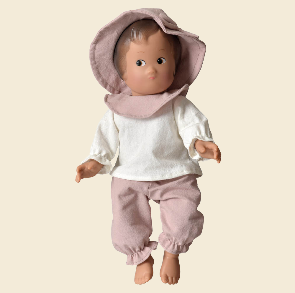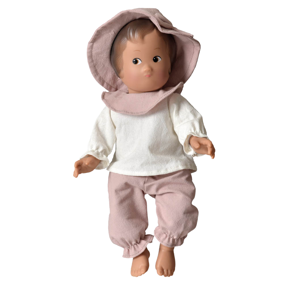 Little hands learn caring through play whilst discovering her beautifully hand-finished details. Quality vinyl skin feels wonderfully smooth, and her rooted hair invites gentle brushing and styling games.