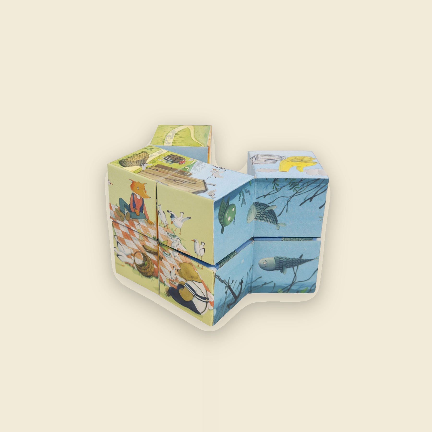 Eight smooth cubes twist and turn in your hands, revealing a fox and bear's fishing adventure. Each flip creates new scenes—perhaps they catch a whale or discover treasure beneath the waves.