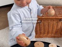 Stack the chunky wooden rings, then give the base a gentle tap – watch everything wobble and rock! Five soft-painted rings in blush, peach and caramel turn simple stacking into a delightful game.