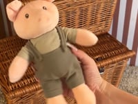 This soft puppy turns quiet moments into gentle adventures. With his rust-red overalls and friendly eye patch, he's ready for cuddles and imaginative play wherever little ones go.