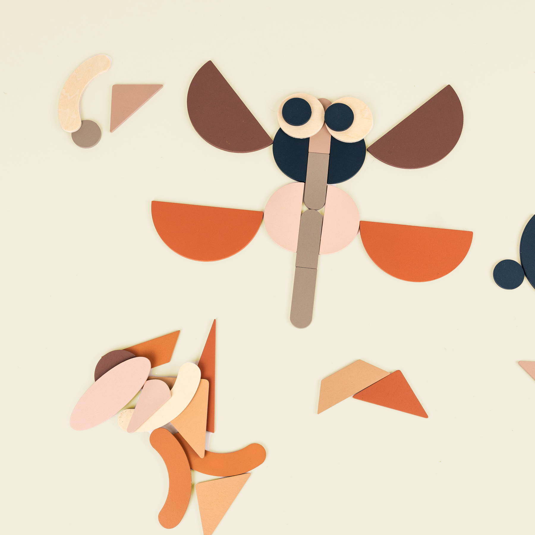 Simple wooden shapes become magical creatures and cosy houses. Arrange soft-coloured circles, triangles and diamonds on the table, and watch a friendly crab appear before your eyes.