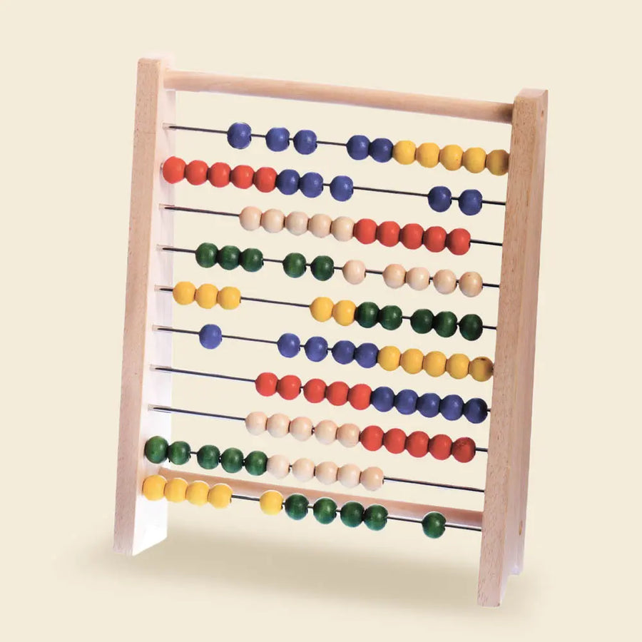Ten rows of smooth wooden beads wait to be pushed and counted. Each colourful bead slides along its wire, making gentle clicking sounds as little fingers discover numbers for the first time.